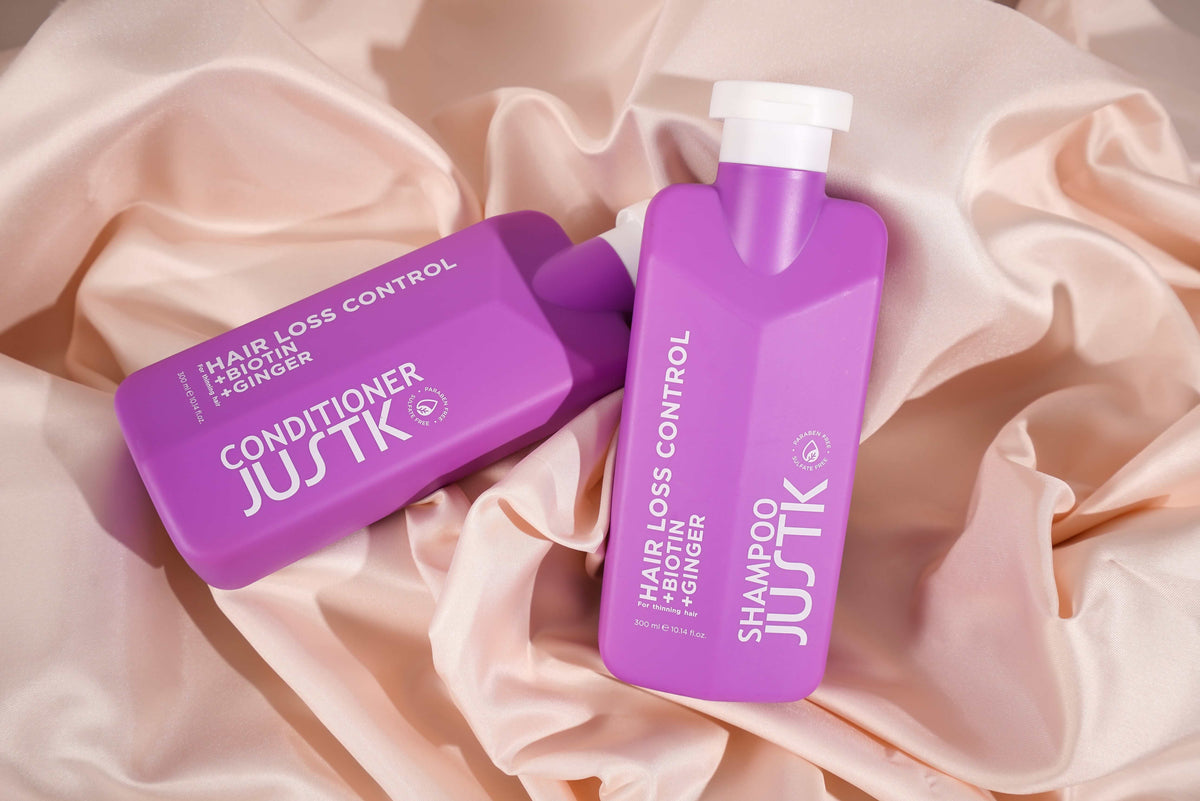 JustK Hair Loss Control Shampoo with biotin and ginger is designed to strengthen weak, thinning hair and support healthy hair growth. Its sulfate-free formula energizes the scalp, reduces breakage, and promotes visibly fuller, thicker strands.