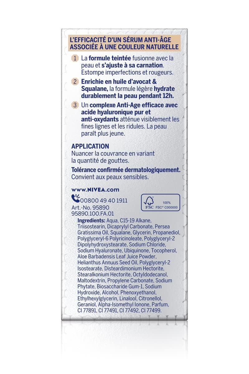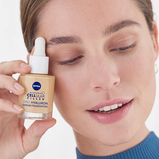 NIVEA 3-in-1 Hyaluronic Serum Foundation Medium (30 ml), Anti-Age Makeup for Younger Looking Skin, Moisturising and Gives a Naturally Even Complexion