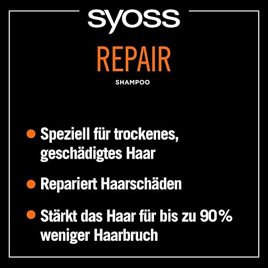 - Syoss Repair Shampoo - The Syoss Repair Shampoo is suitable for damaged and dry hair and prevents future hair damage