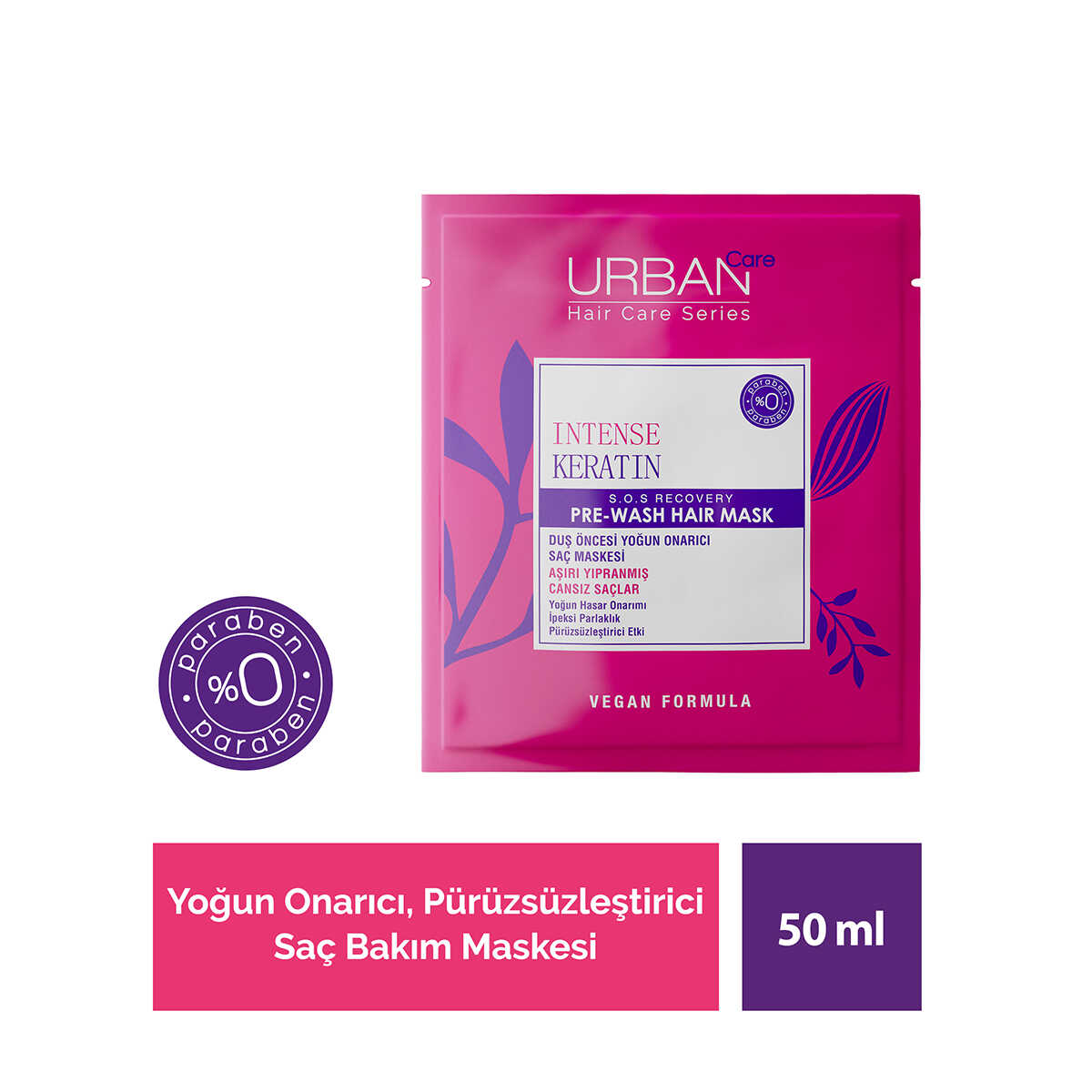 Urban Care SOS RECOVERY Intensive Repair Pre-Shower Hair Mask with Intense Keratin is specially formulated for extremely damaged, dry, dull and lifeless hair. The special formula makes extremely damaged and dull hair smoother and shinier. Thanks to its smoothing action, it helps to have shiny, full and strong hair from root to tip. Leaves hair silky soft and easy to comb. Does not weigh hair down. Thanks to herbal keratin, it helps to restructure the hair, offers a rebuilding and strengthening effect and protection against damage. - Intense softness and shine. - Repairing and strengthening action. - Restructuring. - Without parabens. - Contains vegan ingredients. No ingredients derived from animals were used. "