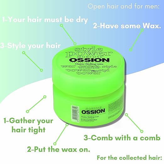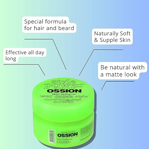 Morfose Ossion Hair Styling Wax - Strong Hold, Matte Finish for Long Lasting Stylings, 100 ml (Green Packaging)